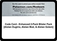 Code Card - Enhanced 2-Pack Blister Pack [Alolan Dugtrio, Alolan Muk, & Alolan Golem]