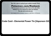 Code Card - Elemental Power Tin [Vaporeon GX]
